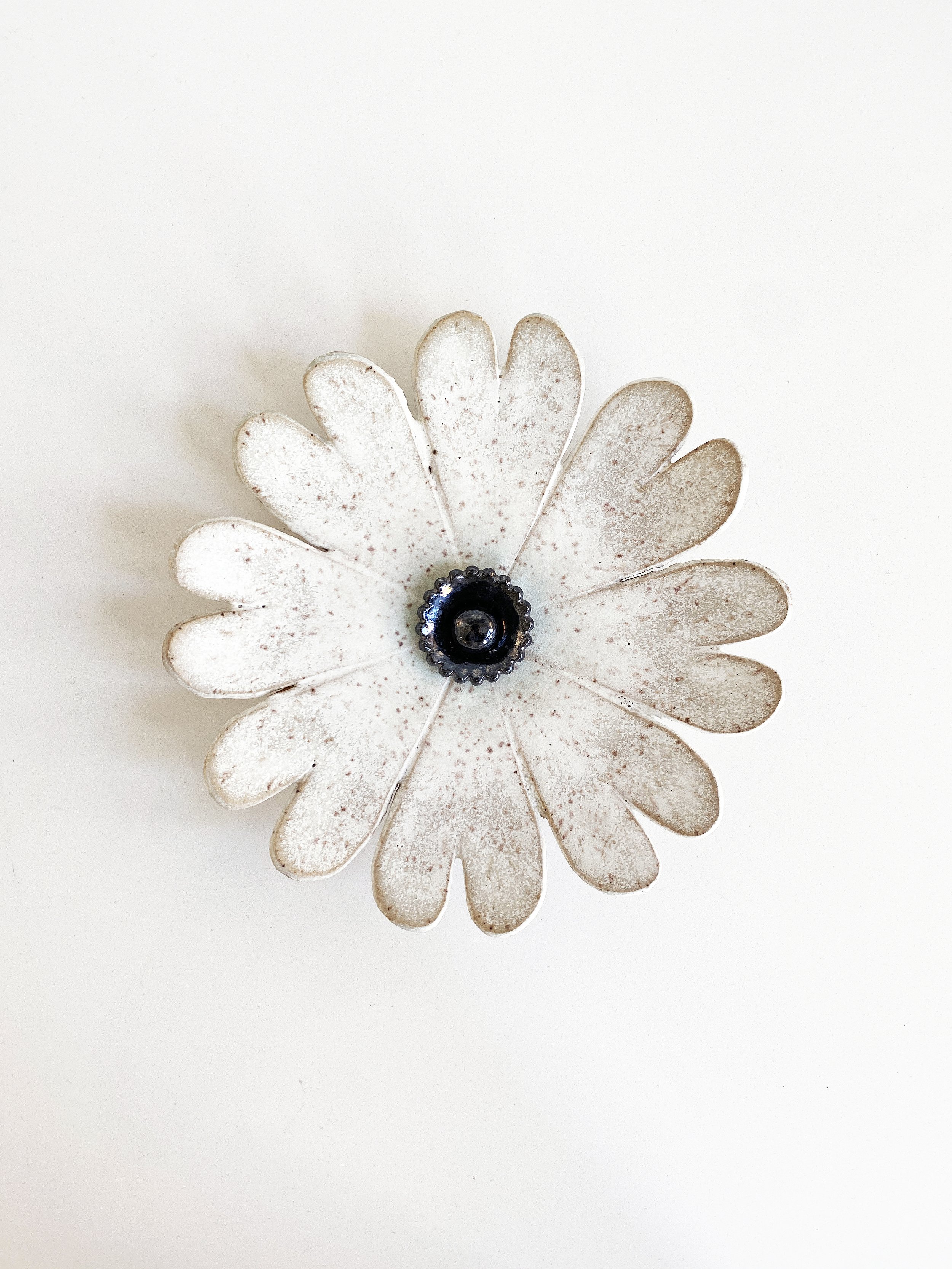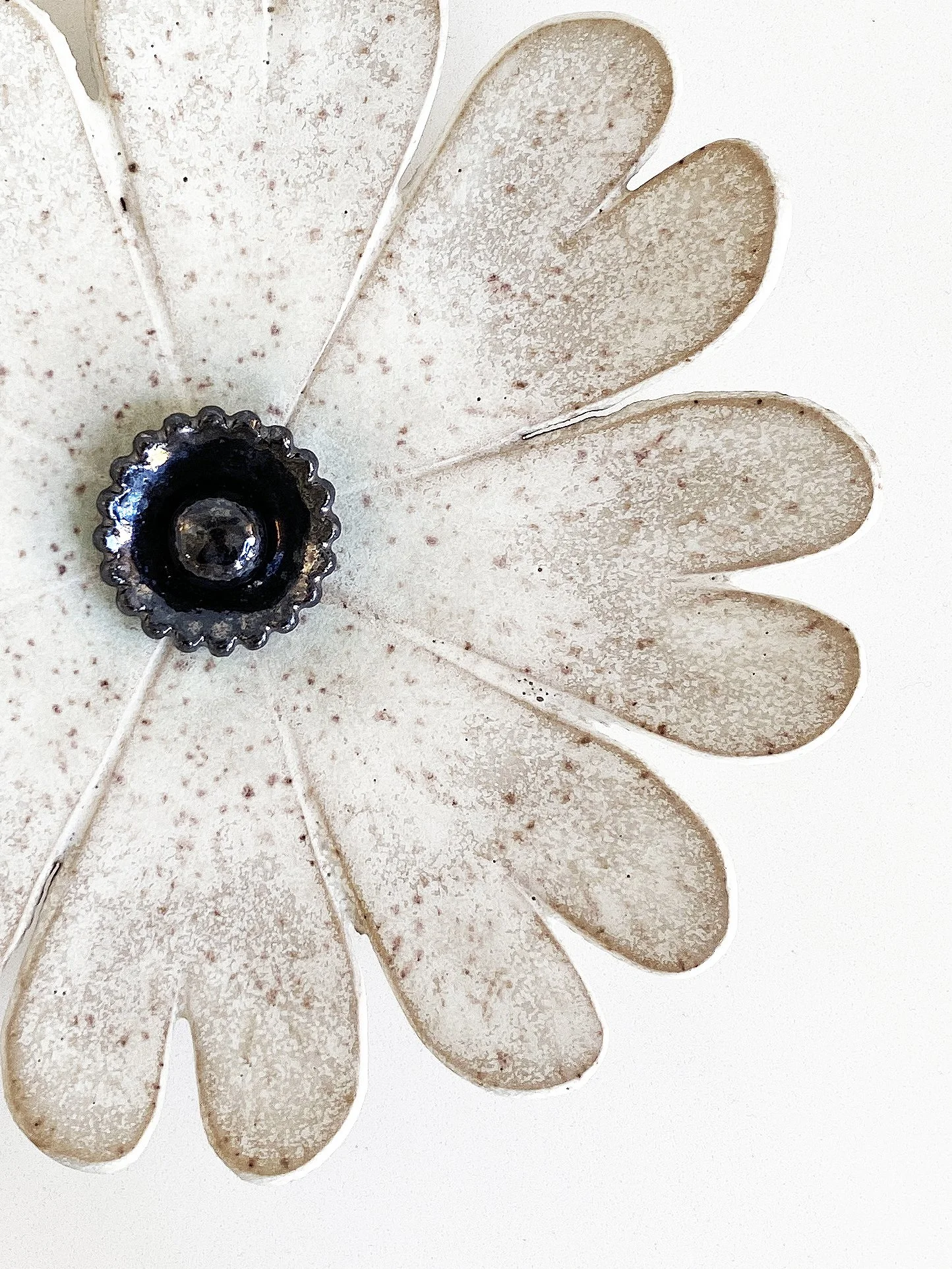 This Wallflower is part of the 2024 Winter Wallflower Collection. It is a handmade ceramic sculpture with built-in keyhole on the back for hanging on the wall, or it can be displayed on a flat surface such as a coffee or dining table.