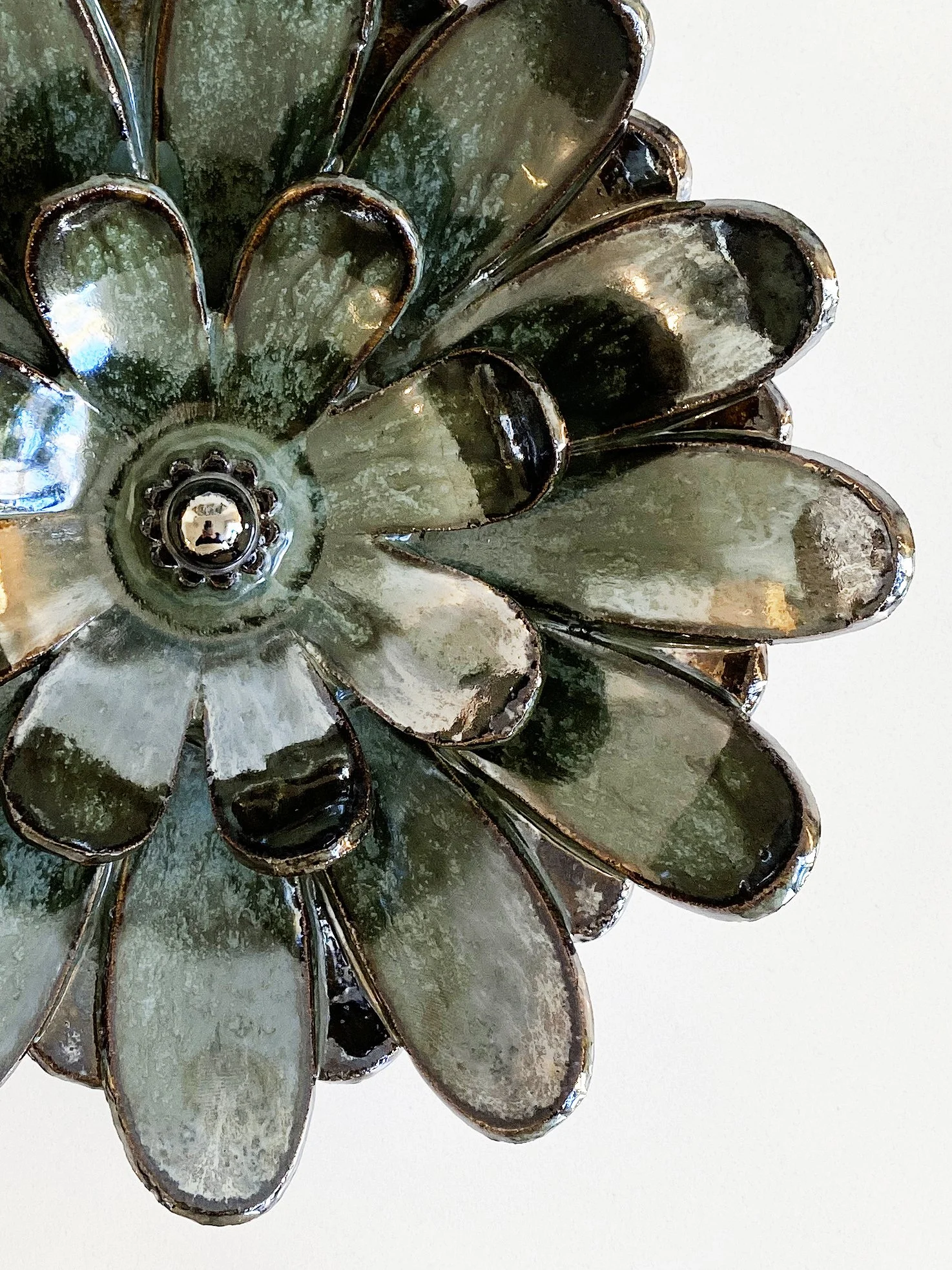 This Wallflower is part of the 2024 Winter Wallflower Collection. It is a handmade ceramic sculpture with built-in keyhole on the back for hanging on the wall, or it can be displayed on a flat surface such as a coffee or dining table.