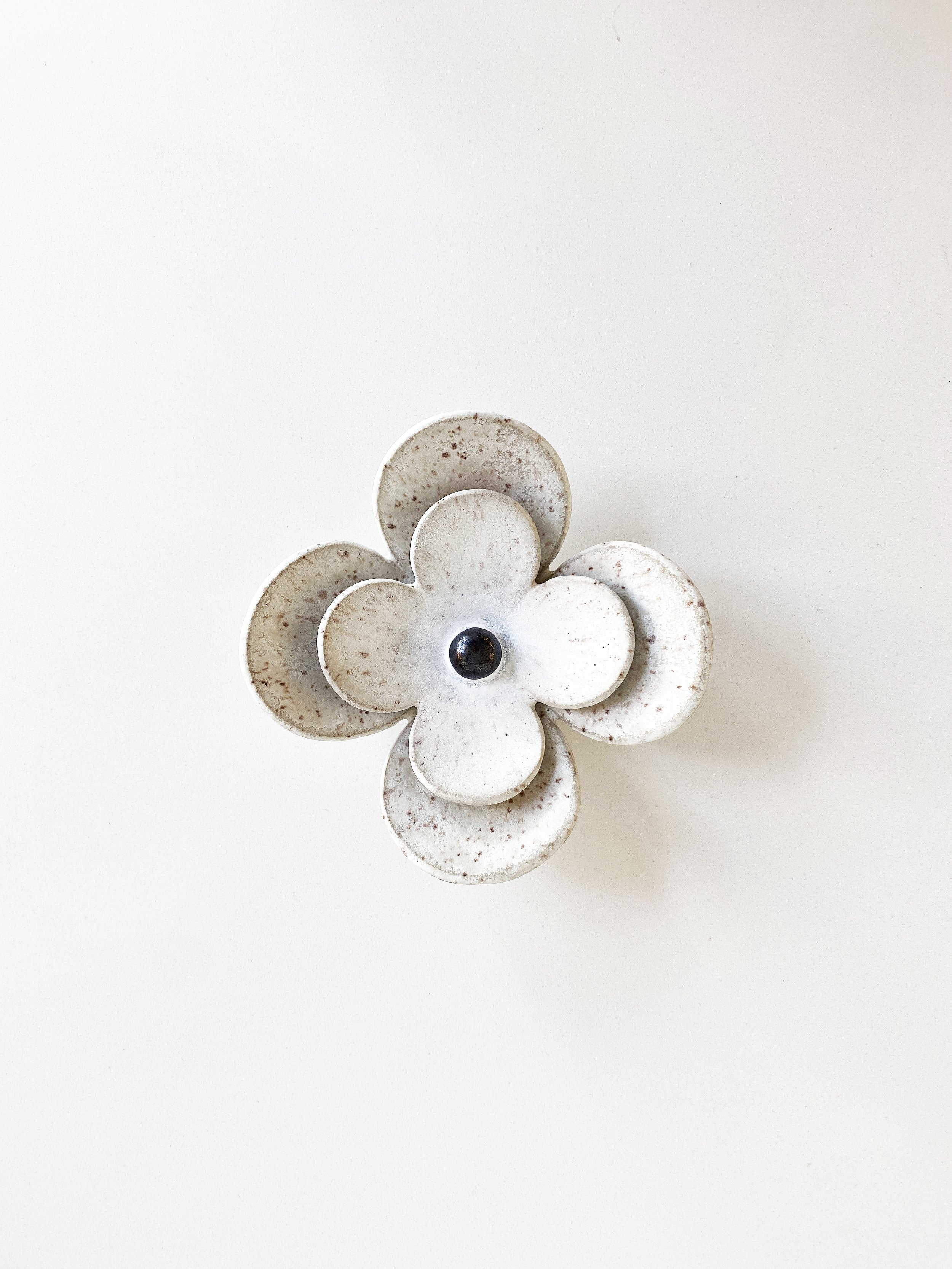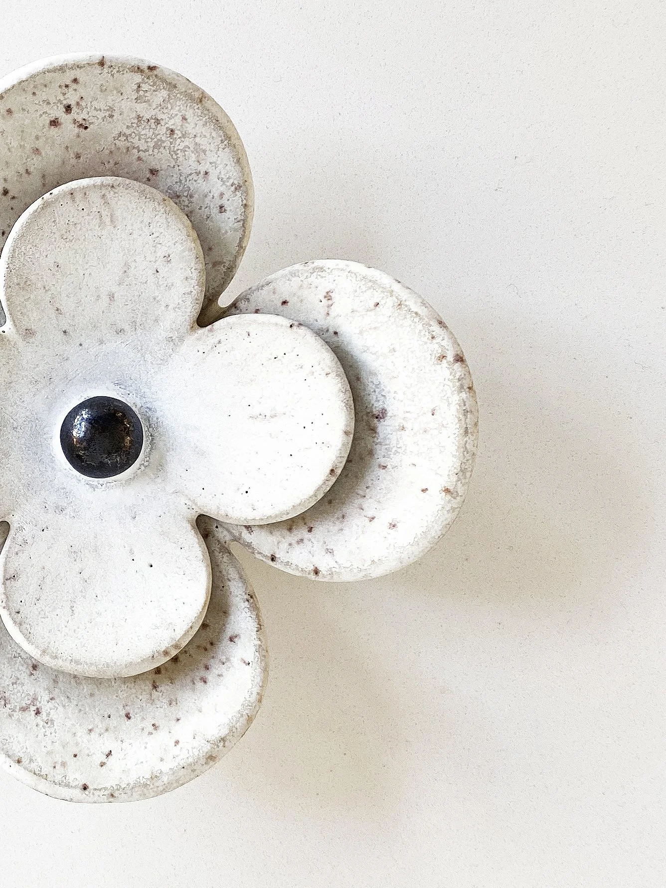 This Wallflower is part of the 2024 Winter Wallflower Collection. It is a handmade ceramic sculpture with built-in keyhole on the back for hanging on the wall, or it can be displayed on a flat surface such as a coffee or dining table.